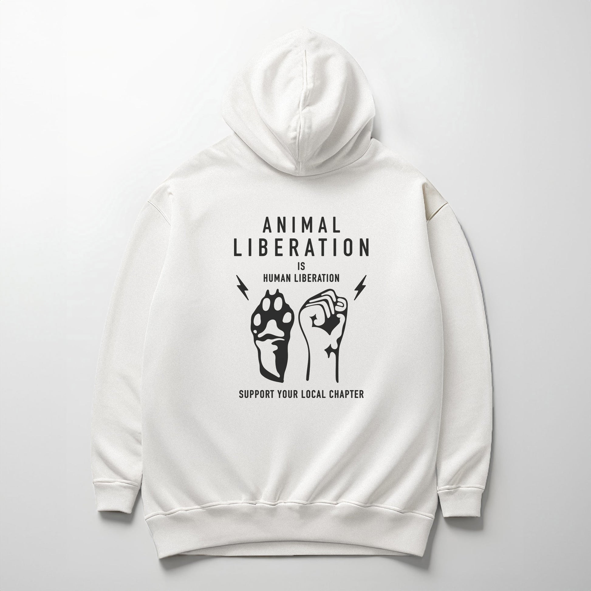 Join us by saying it out loud: "Animal Liberation is Human Liberation". This classic design is an iconic shout-out for animal rights. Made in America, this hoodie not only supports ethical production but also serves as a powerful statement piece. Wear it proudly and join the movement for a world where all beings are free!