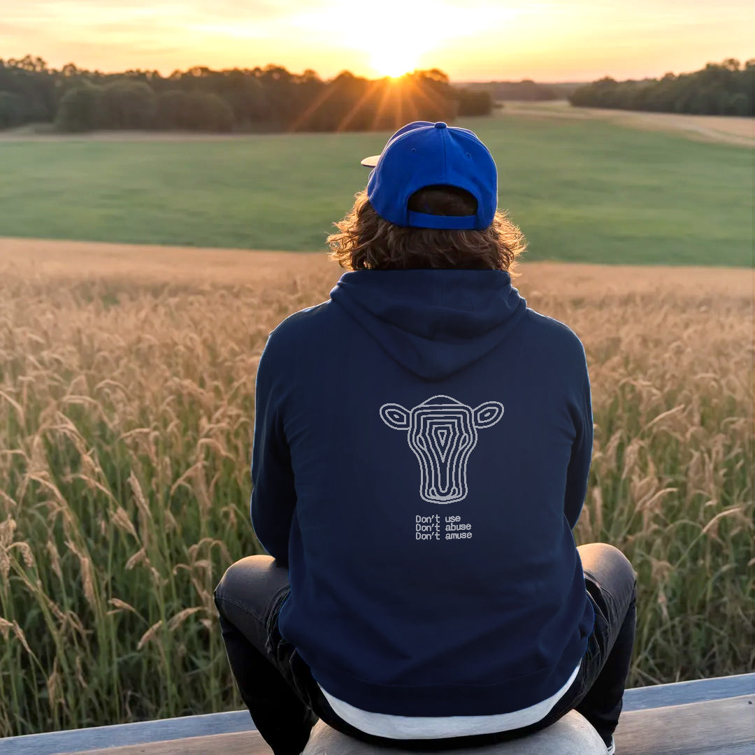 Cows are among the most gentle and amiable animals on Earth. Those who have had the pleasure of engaging with these magnificent creatures understand that cows are intelligent, loving, and full of life. Sadly, they are exploited by humans who use and abuse their bodies in so many ways, even to be simply entertained. We must unite against this cruelty and declare, 'NO MORE!’. 5% of each purchase will go directly to support a farm animal sanctuary.
